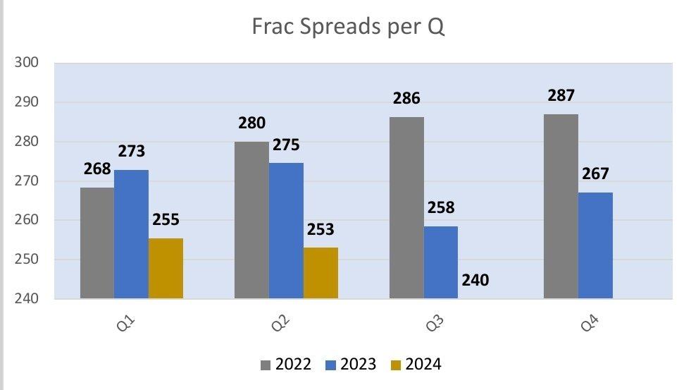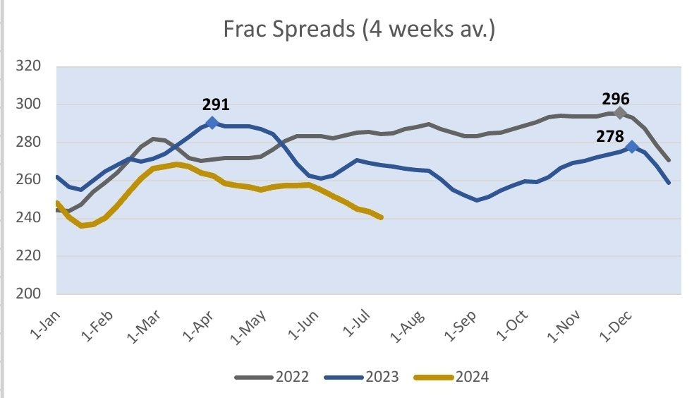 US frac spreads are further expected to soften in 2H before ramping up in 1H 2025