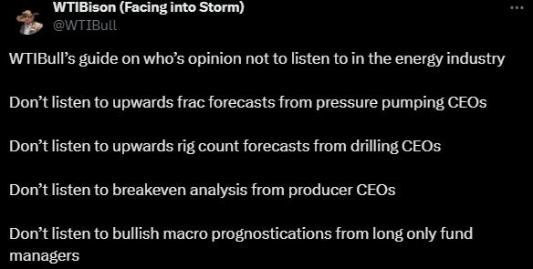 However, one thing is certain: listening to the oilfield service conference calls, the consensus is that the status quo if unlikely sufficient to maintain current production numbers on the natural gas side while at best, sufficient to support current liquids activity on the oilier side. In a nutshell, the fracturing count is likely at a cycle low, both in numbers and also margins and will have to increase in the coming year to meet domestic baseload requirements and any further buildout of US LNG. Completion services are going to have major torque to rising US natural gas demand requirements, likely leading to good pricing power margins upon recovery.