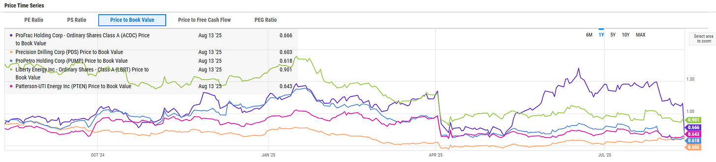 Profrac (NASDAQ: ACDC) was down -42% today after reporting an overnight equity raise for a relatively modest $75 million with an $11 million over allotment option. The sell-off was significantly disproportionate to the amount of the raise although the pricing was quite low, with shares available at $4. Reports suggest insiders, who already owned ~90% of the company were putting up their own capital in it. Aside from trading it after big sell-offs in the past year, I did not remain long this name but chose to re-enter the stock today given a return to a large discount as I feel the risk-reward is good, although the risk is higher with this name then peers due to debt.