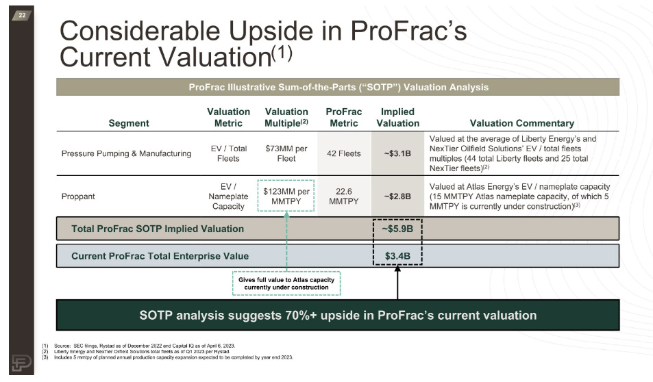 Last week I wrote about an oilfield service position that was new in ProPetro, a smaller competitor of Profrac that operates solely in the Permian. Profrac is a much bigger outfit and not only does frac but has a vertical integration set-up, meaning, they want to be a one-stop-shop for their needy E&P clients when it comes to well completion. Profrac is also one of the largest completion companies in the United States with at least 45 frac fleets available, with ~30 currently in service.