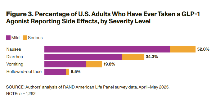 Counter narrative to the bear case:74% of America’s have no plans to consider weight loss drugs; of those who do take them, an astonishing 52% develop nausea and 34.3% diaherra. [Source]